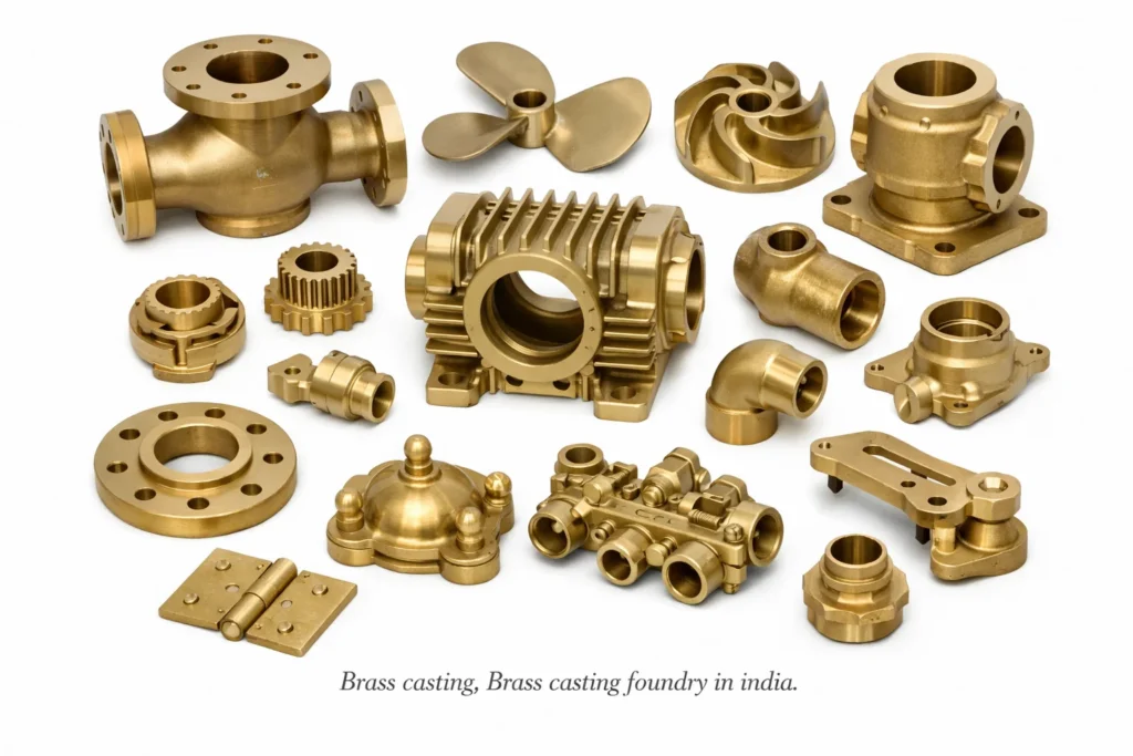 Brass casting manufacturer, Brass foundry India, Brass sand casting exporter, Brass investment casting supplier, CNC machined Brass castings, ASTM Brass casting grades, custom Brass cast components USA, high-precision Brass foundry.